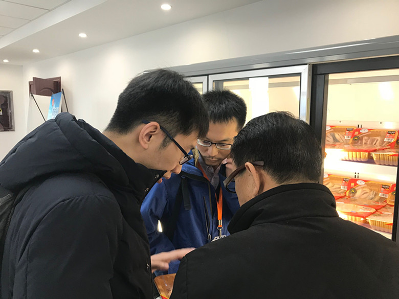 湘佳生鮮家禽產(chǎn)品陳列室,茶園雞、橘園雞、青腳雞、土黑雞、黃油母雞、麻雞、石門土雞等各種雞肉分割品,老人雞肉、兒童雞肉、孕產(chǎn)婦雞肉以及各種雞肉調(diào)理品琳瑯滿目,兩位年輕人逐一拿出一件件陳列品,仔細(xì)辨認(rèn),并從包裝設(shè)計、產(chǎn)品特性、養(yǎng)殖日齡、產(chǎn)品說明等方面提出了許多合理化建議,并希望湘佳生鮮家禽要更多地順應(yīng)“新零售”的趨勢,不斷抓住消費者的購買“痛點”。